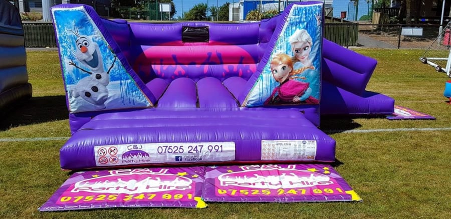 ✅ Stunning Frozen-themed artwork ✅ Low height design – ideal for indoor venues and halls ✅ Built-in slide for added excitement ✅ Suitable for children up to 11 years ✅ Option to add a Bluetooth speaker for just £10 – stream music from any smart device ✅ Available for private hires, schools, clubs, and indoor events