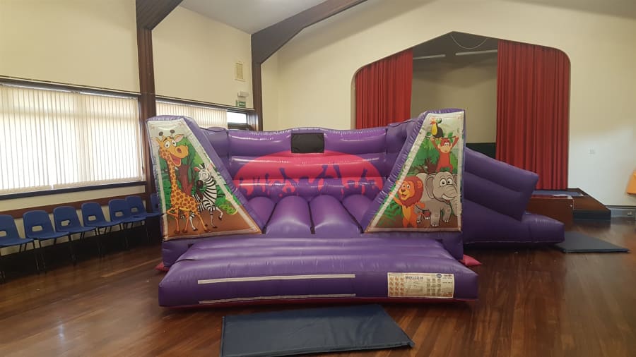 Bring the wild fun of the jungle to your next party with our Jungle Low Height Castle with Slide—an ideal inflatable for younger children! Designed with a vibrant jungle theme and a compact open-top structure, this unit is suitable for most indoor venues with lower ceilings, while still being just as fun for outdoor use.