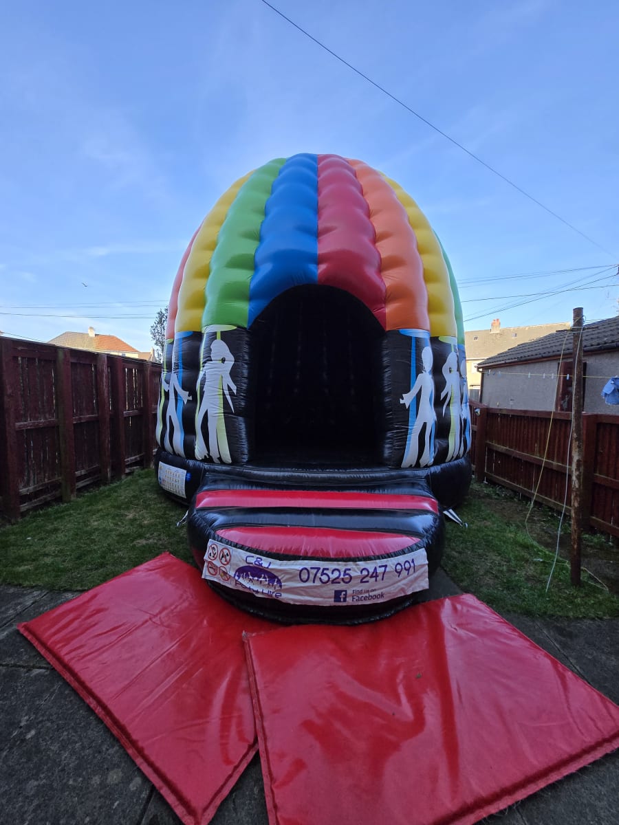 Our Disco Dome Bouncy Castle is the ultimate party upgrade! With built-in disco lighting and an integrated plug-and-play sound system, you can stream your favourite tunes directly from any smart device—just plug in your phone, tablet, or laptop and let the party begin.
