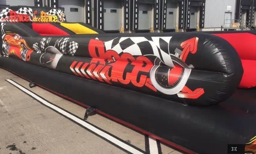 ✅ 35ft of high-speed inflatable action ✅ Racing car theme with high-quality digital artwork ✅ Two-lane setup with strong bungee cords ✅ Ideal for garden parties, corporate events & fun days ✅ Suitable for ages 10 through to adults ✅ Optional staffing available for safe and supervised fun ✅ Exclusive design – only available from C&J Party Hire